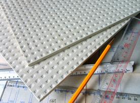 板材表面具有独特的压纹,可有效提高板材与瓷砖胶的粘结力,是一种用于粘贴石材和瓷砖的经济而实用的墙体基材。